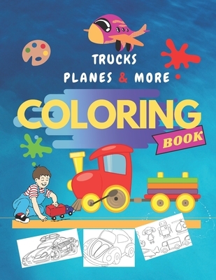 Trucks, Planes & More Coloring Book: Transport coloring book for kids & toddlers, Age 2-4 and 4-8, Cool and Fun cars, Trains, Tractors, Trucks, Digger